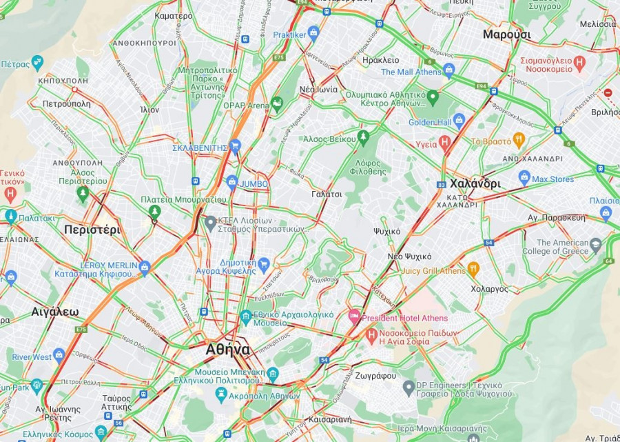 Kίνηση τώρα: 20λεπτες καθυστερήσεις στην Αττική Οδό - Στο «κόκκινο» κεντρικοί δρόμοι