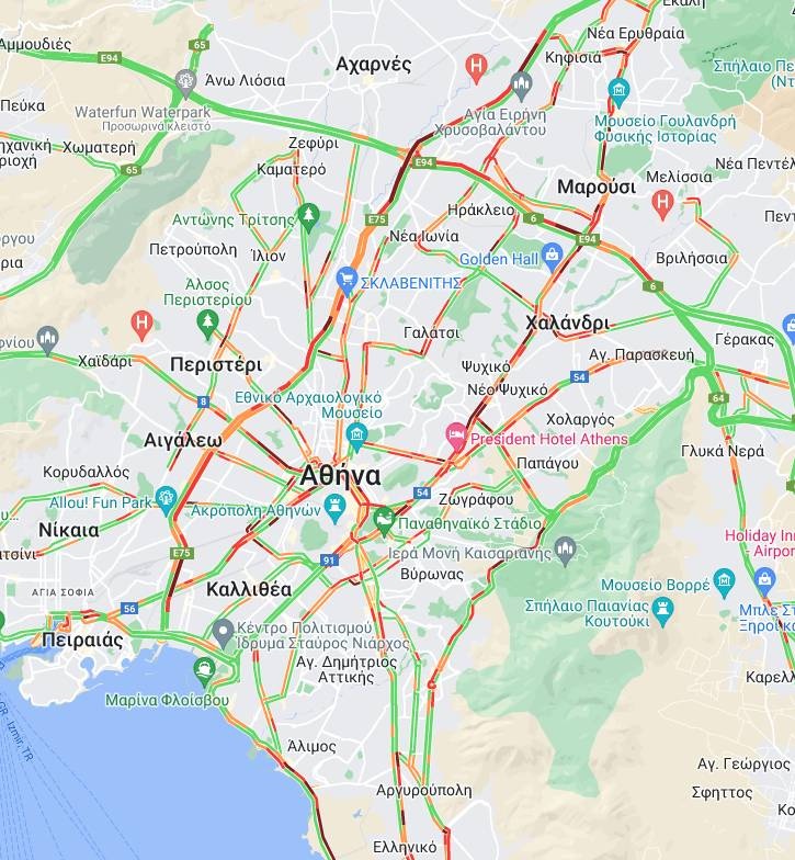 Κίνηση επικρατεί από νωρίς σήμερα Πέμπτη 21 Δεκεμβρίου σε πολλούς δρόμους της Αττικής.
