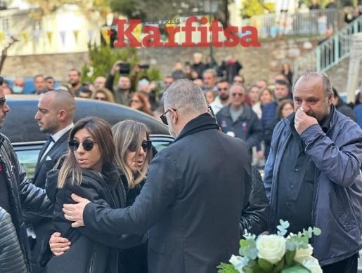 Η οικογένεια του λαϊκού τραγουδιστή που βρισκόταν μαζί του μέχρι τις τελευταίες στιγμές του, έφτασε αγκαλιασμένη στον ιερό ναό, με τη σύζυγο του, την κόρη του και τον αδερφό του να δίνουν δύναμη ο ένας στον άλλο