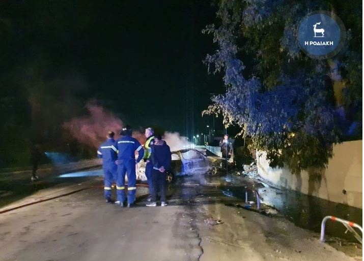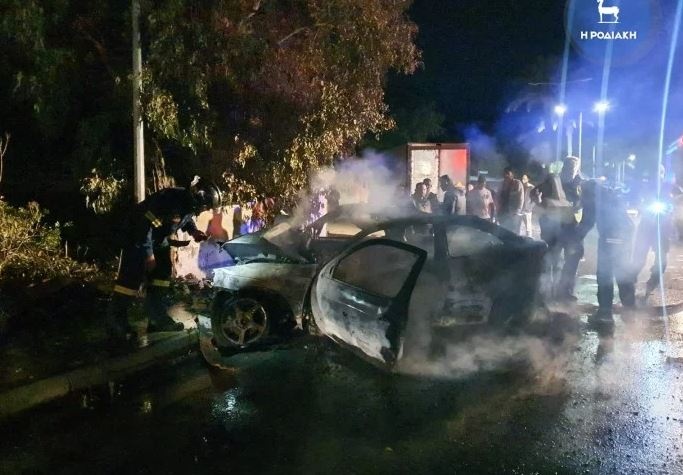 Σοβαρό τροχαίο στη Ρόδο: ΙΧ τυλίχθηκε στις φλόγες -Τραυματίστηκε ο οδηγός