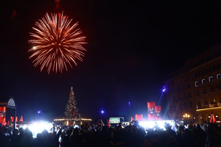 Εντυπωσιακή ήταν και η βραδιά στη Θεσσαλονίκη. Οι εορτασμοί είχαν ξεκινήσει εκεί από νωρίς, καθώς εκατοντάδες φαναράκια υψώθηκαν μετά τις 6 το απόγευμα στον ουρανό της πόλης, πάνω από τη στολισμένη πλατεία Αριστοτέλους. Πρόκειται για το «Fanarakia Christmas Event», που διοργάνωσε για δεύτερη συνεχόμενη χρονιά ο Εμπορικός Σύλλογος Θεσσαλονίκης.