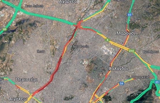 Παράλληλα, προβλήματα εντοπίζονται και στη Λ. Κηφισίας, στη Λ. Ποσειδώνος και στη Λ. Αθηνών στο ύψος του Χαϊδαρίου.