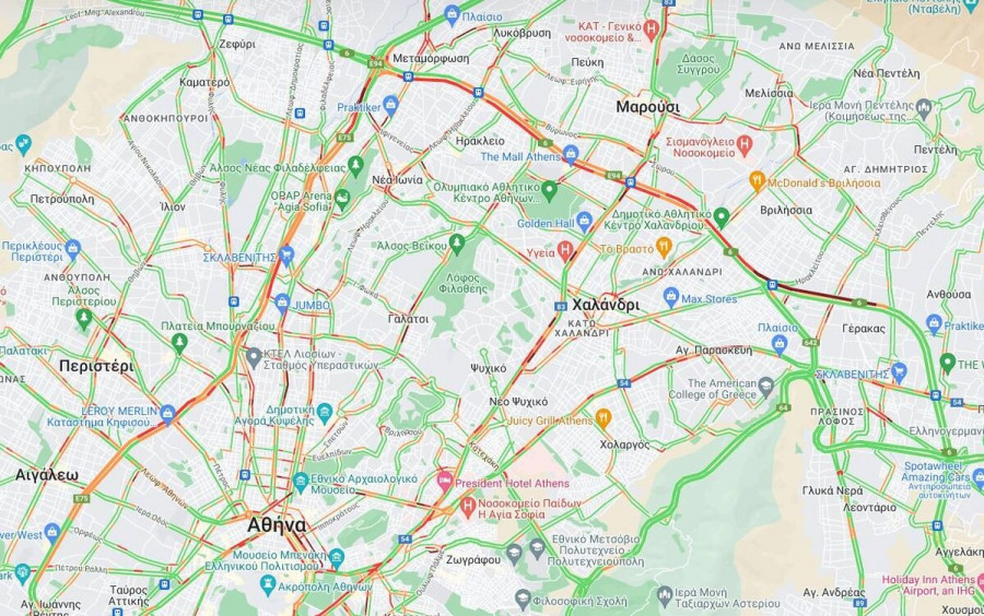 Κυκλοφοριακό χάος επικρατεί στην Αττική Οδό, με τα οχήματα να είναι ακινητοποιημένα από το ύψος του Γέρακα εξαιτίας τροχαίου.