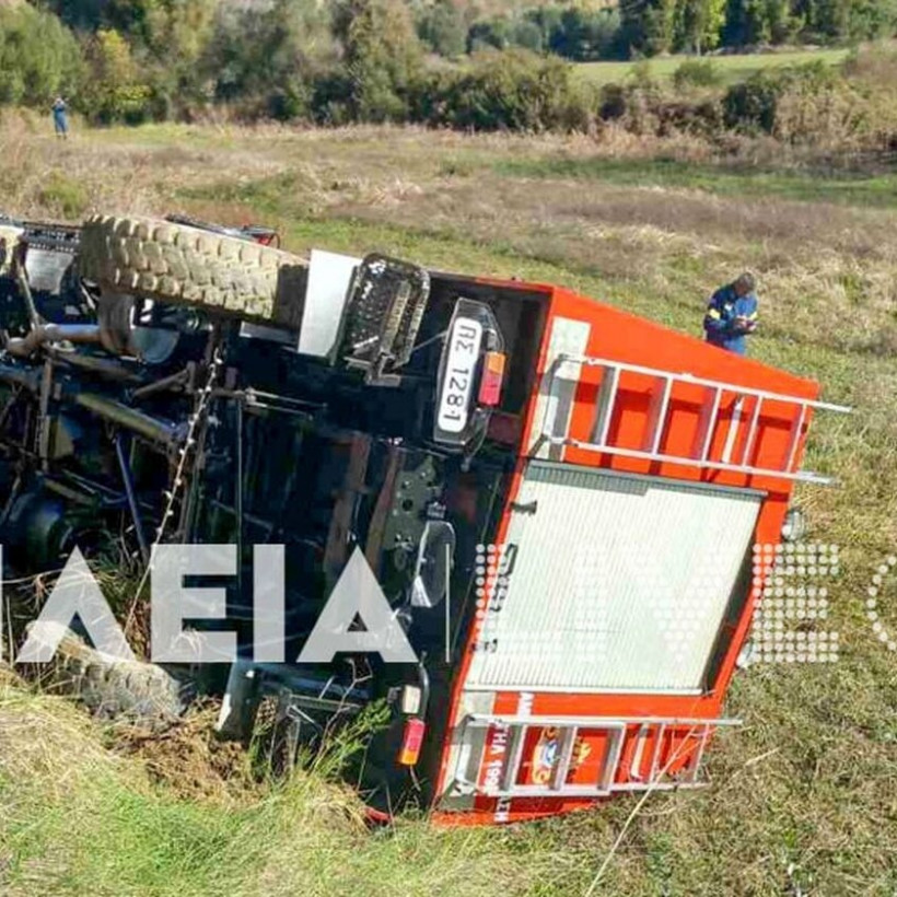 Σύμφωνα με το ilialive.gr, στο σημείο που πήγαν να περάσουν δύο πυροσβεστικά οχήματα το ένα πίσω από το άλλο, υποχώρησε το έδαφος με αποτέλεσμα να ανατραπεί σε χωράφι το ένα από τα δύο.