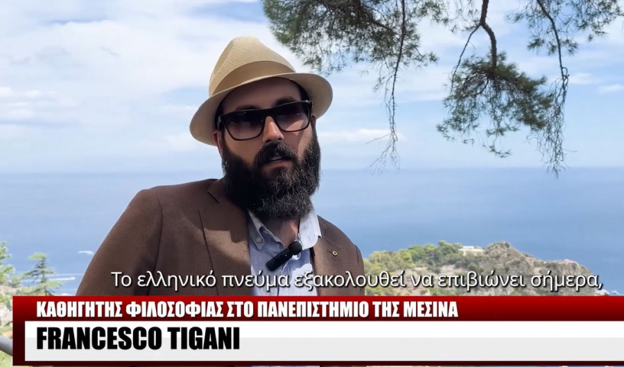 Παίρνουμε το φέρι μποτ από την Καλαβρία και περνάμε απέναντι στο λιμάνι της Μεσσήνης, κι από εκεί κατεβαίνουμε προς τις ανατολικές ακτές της Σικελίας και την Ταορμίνα (αρχαίο Ταυρομένιο), έναν υπερ-δημοφιλή τουριστικό προορισμό, στους πρόποδες σχεδόν, της Αίτνας. Εκεί, μας περιμένουν σε ένα ειδυλλιακό τοπίο καθηγητές πανεπιστημίου και λόγιοι οι οποίοι ζήτησαν να μας δουν, για να μας εκφράσουν τι είναι για αυτούς η ελληνικότητα και γιατί το νησί τους είναι γεμάτη από αυτήν.