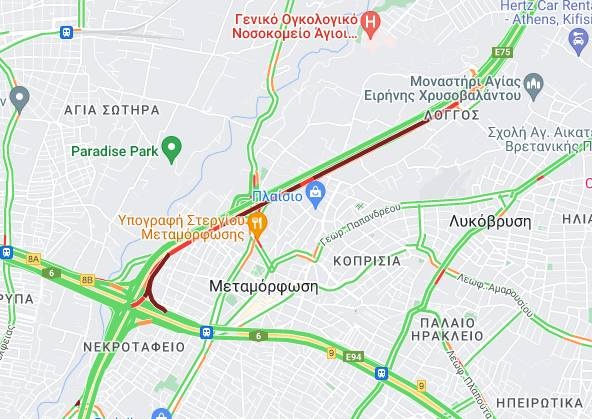 Από το τροχαίο σημειώθηκε κίνηση από το ύψος της Αττικής Οδού μέχρι και τη Λυκόβρυση.