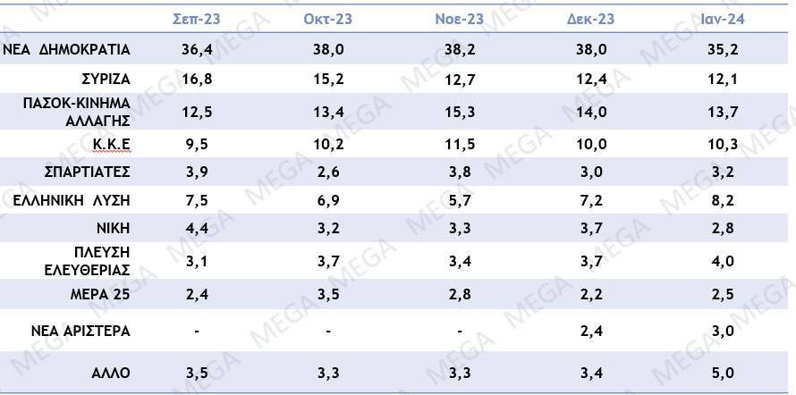 Δημοσκόπηση της Metron Analysis για το κεντρικό δελτίο του MEGA δημοσιεύθηκε σήμερα Πέμπτη 25 Ιανουαρίου.