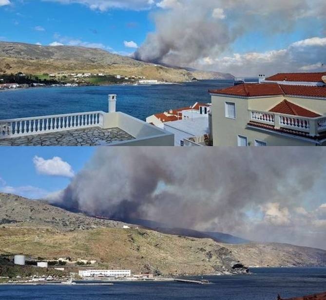 Μεγάλη φωτιά στην Άνδρο με τις δυνάμεις της Πυροσβεστικής να ενισχύονται από Σύρο και Τήνο - Επί ποδός εθελοντές και η Πολιτική Προστασία
