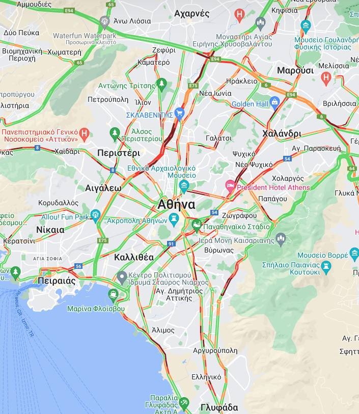 Μεγάλα προβλήματα παρατηρούνται στον Κηφισό, την Αττική Οδό, την Κηφισίας, το κέντρο της Αθήνας και στην Ποσειδώνος.