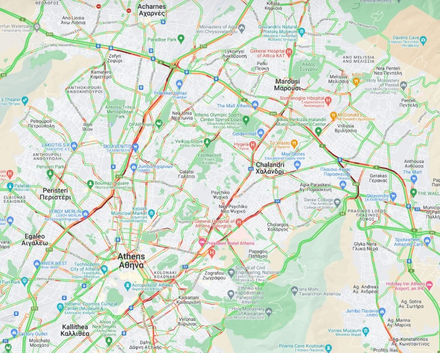 Πολύ δύσκολη είναι και η κατάσταση στην Αττική Οδό στο ρεύμα προς Ελευσίνα αλλά και σε Κηφισίας και Μεσογείων.