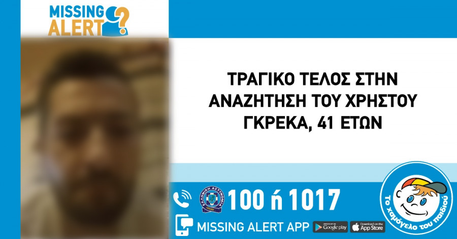 Τραγικό είναι το τέλος στην αναζήτηση του Χρήστου Γκρέκα, που την Παρασκευή 19 Ιανουαρίου, πρωινές ώρες, εξαφανίστηκε από την περιοχή του Ελληνικού.