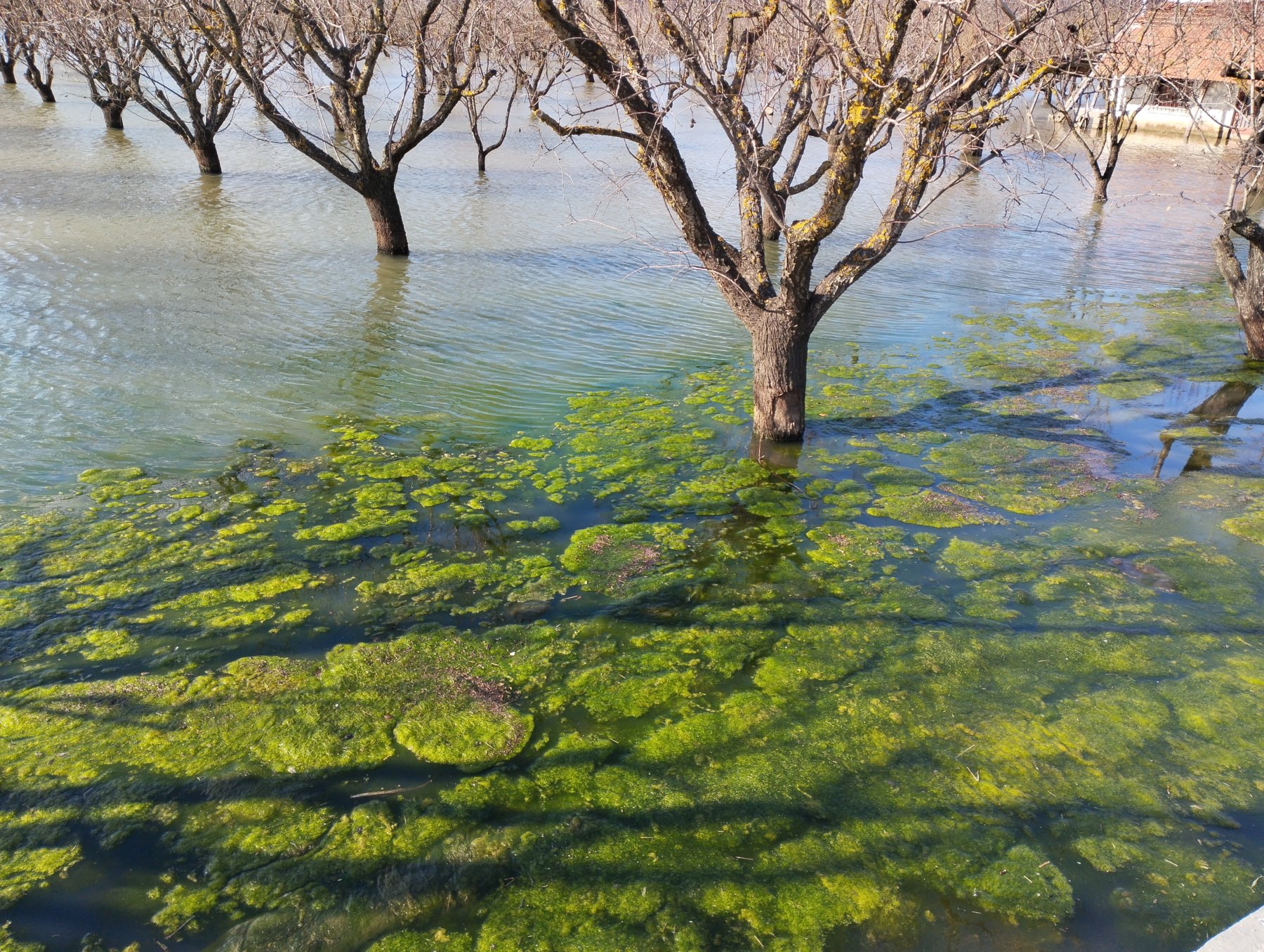 Η πλειοψηφία των κατοικημένων σπιτιών των Καναλίων ευτυχώς γλίτωσε από την ορμή του νερού, όμως δεν ισχύει το ίδιο για ένα σημαντικό μέρος των καλλιεργήσιμων εδαφών. Ακολουθώντας τον δρόμο από και προς το χωριό, γίνεται κανείς μάρτυρας ενός ανατριχιαστικού, αλλά και αναπάντεχα όμορφου θεάματος, καθώς ολόκληρα στρέμματα δέντρων, στην πλειονότητά τους αμυγδαλιές, μοιάζουν λες και για κάποια περίεργη αιτία, να φυτεύτηκαν κάτω από το νερό.