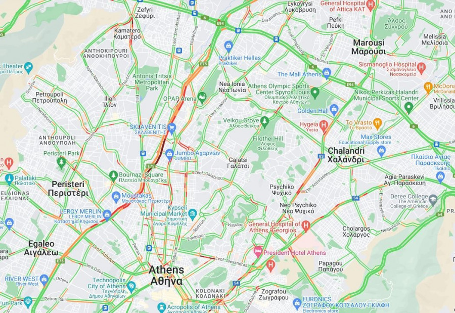 Καθυστερήσεις, όμως, υπάρχουν και στην άνοδο, αλλά και στην κάθοδο της Λεωφόρου Κηφισίας, όπως και στους δρόμους γύρω από το κέντρο.