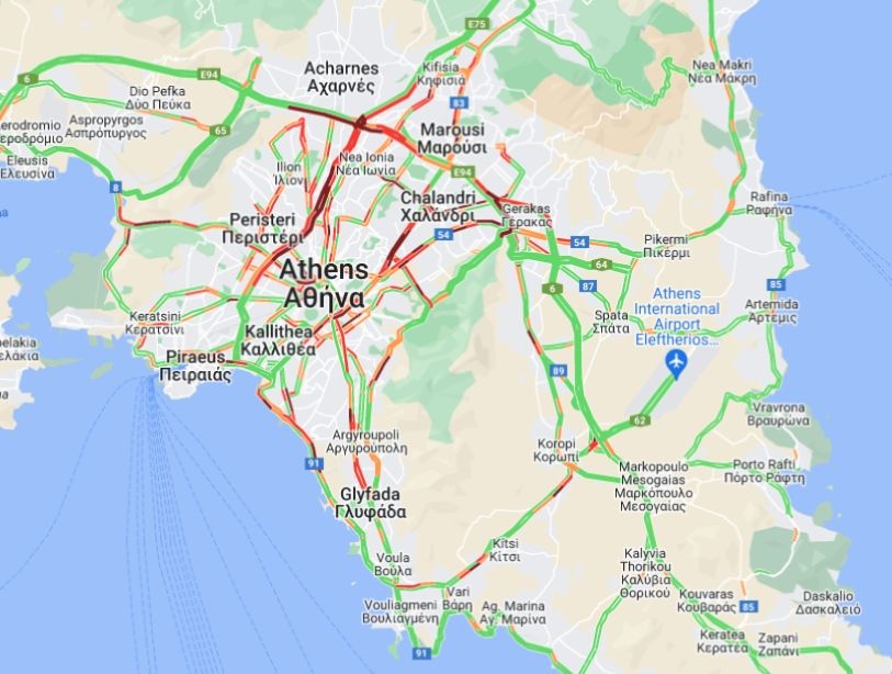 Κίνηση τώρα: Πάρα πολλά προβλήματα στους δρόμους της Αττικής το πρωί της Δευτέρας (04/03)