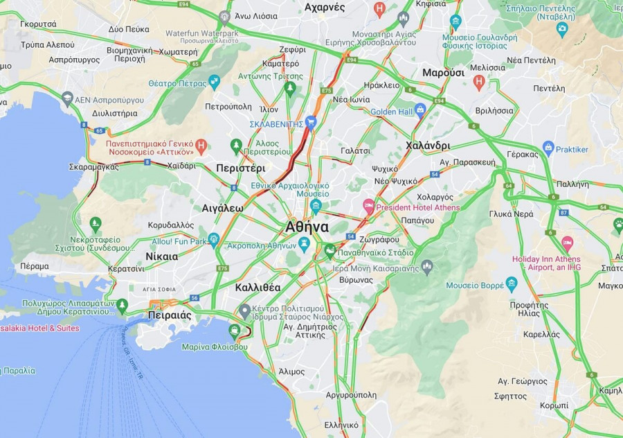 Κίνηση τώρα: Δείτε το χάρτη με την κίνηση στους κεντρικούς δρόμους του λεκανοπεδίου.