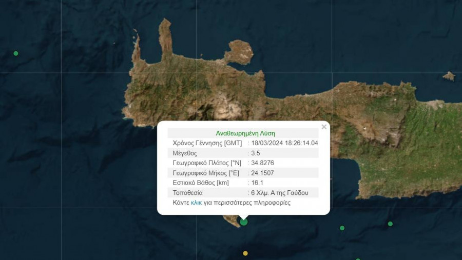 Σεισμική δόνηση 3,5 Ρίχτερ σημειώθηκε στη Γαύδο το απόγευμα της Καθαράς Δευτέρας.