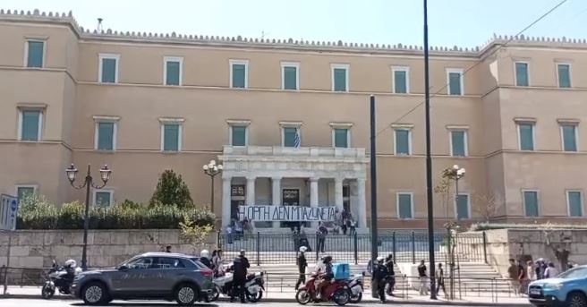 Μέλη του Ρουβίκωνα εισέβαλαν στη Βουλή και το Προεδρικό Μέγαρο - Άνοιξαν πανό για τα Τέμπη