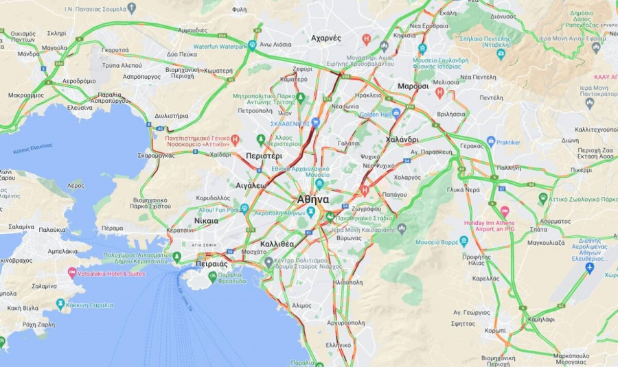 Στο «κόκκινο» είναι επίσης η Παραλιακή, η Κηφισίας, η Αττική Οδός αλλά και η Λεωφόρος Αθηνών, όπου νωρίτερα σημειώθηκε ανατροπή νταλίκας στο ύψος του Χαϊδαρίου, στο ρεύμα προς Κόρινθο.