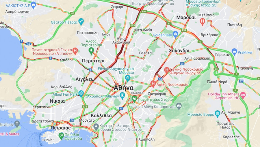 Ιδιαίτερα αυξημένη είναι η κίνηση στους δρόμους της Αττικής με τις μεγαλύτερες καθυστερήσεις να παρατηρούνται στον Κηφισό και στις λεωφόρους Μεσογείων και Κηφισίας.