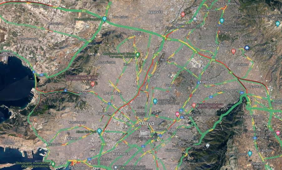 Στο «κόκκινο» βρίσκεται και ο Κηφισός όπου στο ανοδικό ρεύμα η κίνηση ξεκινά από το Αιγάλεω και φτάνει μέχρι τη Νέα Φιλαδέλφεια.