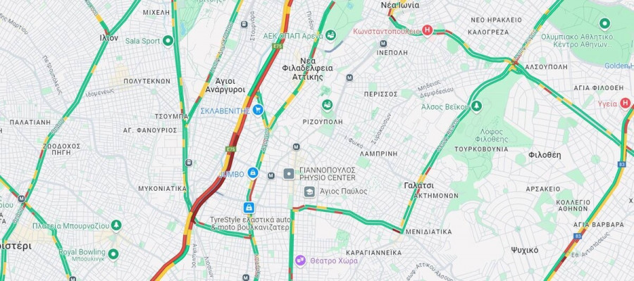 Κατά τα λοιπά «φορτώνουν» ολοένα και περισσότερο οι δρόμοι πέριξ του κέντρου, όπως οι λεωφόροι Βασιλέως Κωνσταντίνου και Βασιλίσσης Σοφίας, ενώ ανά τμήματα προβλήματα παρατηρούνται στις λεωφόρους Κηφισίας και Μεσογείων.