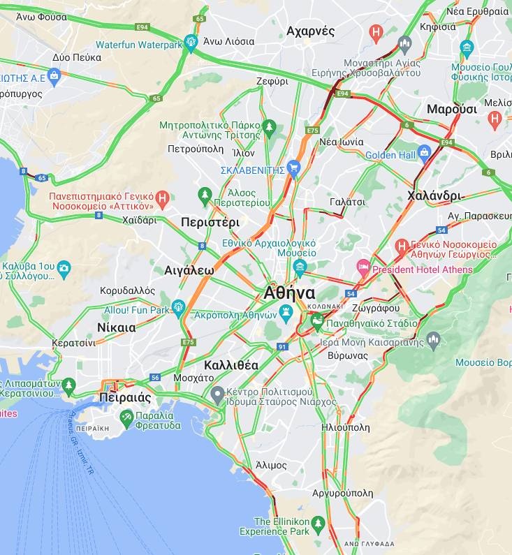 Στην Αττική Οδό σημειώνονται καθυστερήσεις προς Ελευσίνα : 15΄-20΄στην έξοδο για Πειραιά, Περιφερειακή Υμηττού, καθυστερήσεις 10΄-15΄στην έξοδο για Καρέα και καθυστερήσεις προς Αεροδρόμιο: 15΄-20΄ από Μεταμόρφωση έως Κηφισίας.