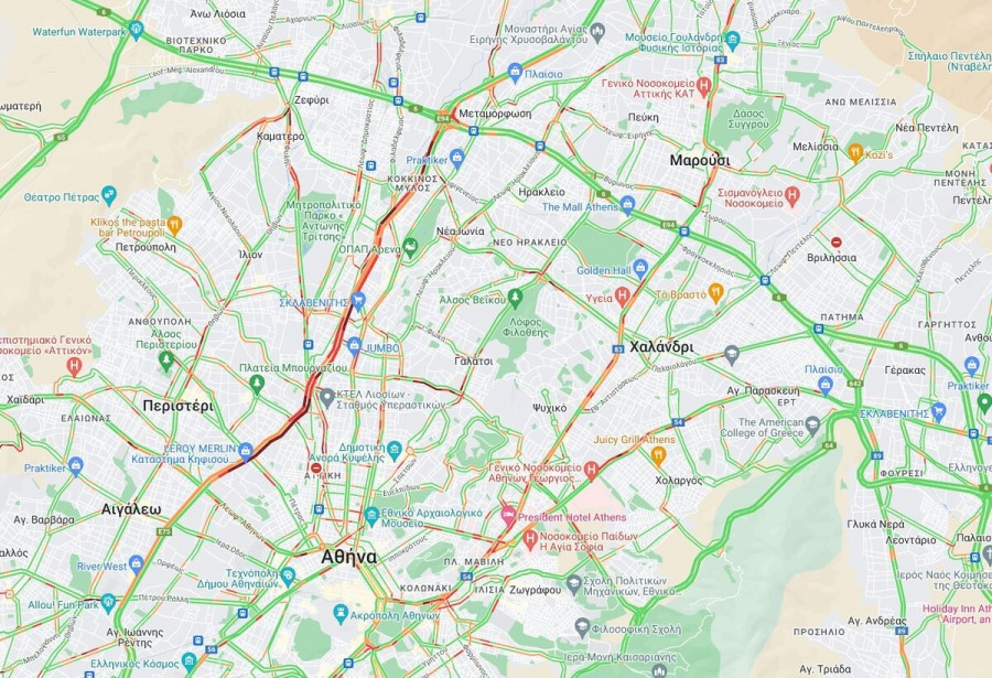 Κίνηση τώρα: Μποτιλιαρισμένος ο Κηφισός - Πού υπάρχουν μικρές καθυστερήσεις