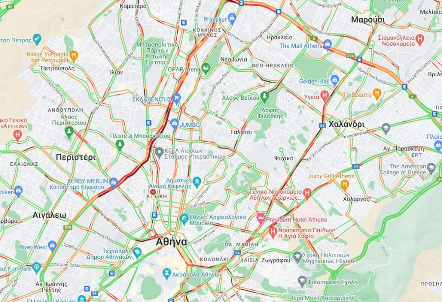 Κίνηση τώρα: Χαμηλές ταχύτητες στους περισσότερους δρόμους της Αττικής