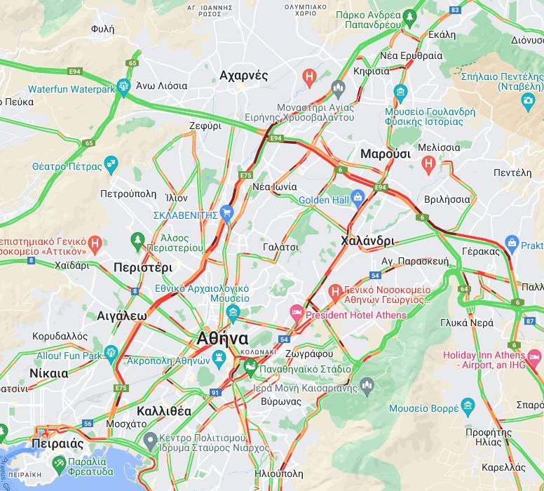 Στην Κηφισίας και τη Λεωφ. Βασ. Κωνσταντίνου τα οχήματα κινούνται με πολύ μικρές ταχύτητες.