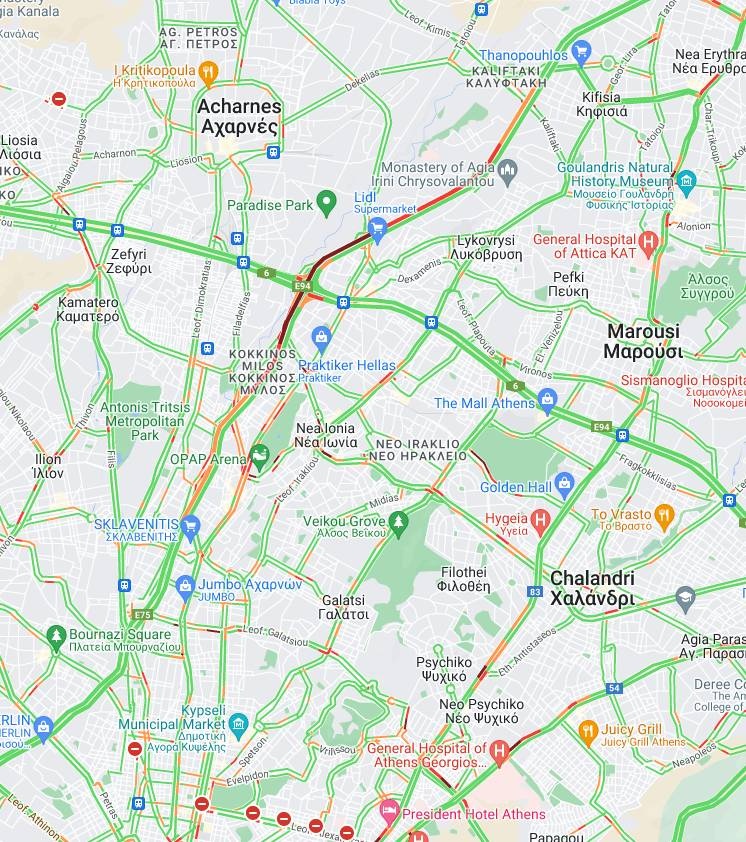 Πιο συγκεκριμένα, έντονη κίνηση επικρατεί αυτήν την ώρα στην κάθοδο του Κηφισού από το ύψος της Λυκόβρυσης μέχρι και την Νέα Ιωανία, με πολλά οχήματα να είναι σταματημένα.