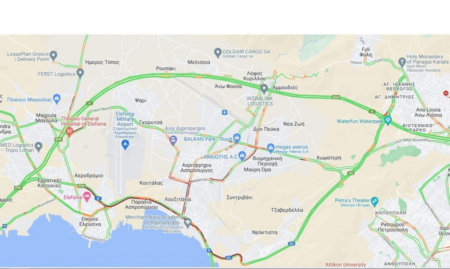 Κυκλοφοριακό κομφούζιο από το ύψος του στρατιωτικού νοσοκομείου Ελευσίνας