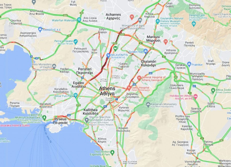 Κίνηση τώρα: Δείτε το χάρτη με την κίνηση στους κεντρικούς δρόμους του λεκανοπεδίου.