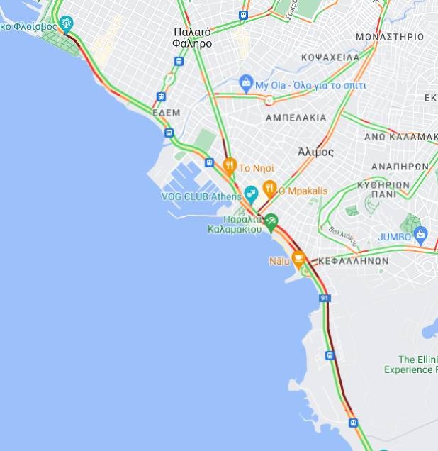 Λόγω τροχαίου ατυχήματος δυσχέρεια στην κυκλοφορία των οχημάτων στη συμβολή της Λεωφόρου Ποσειδώνος και Λεωφόρο Αμφιθέας στην περιοχή του Αλίμου στο ρεύμα κυκλοφορίας προς Πειραιά.