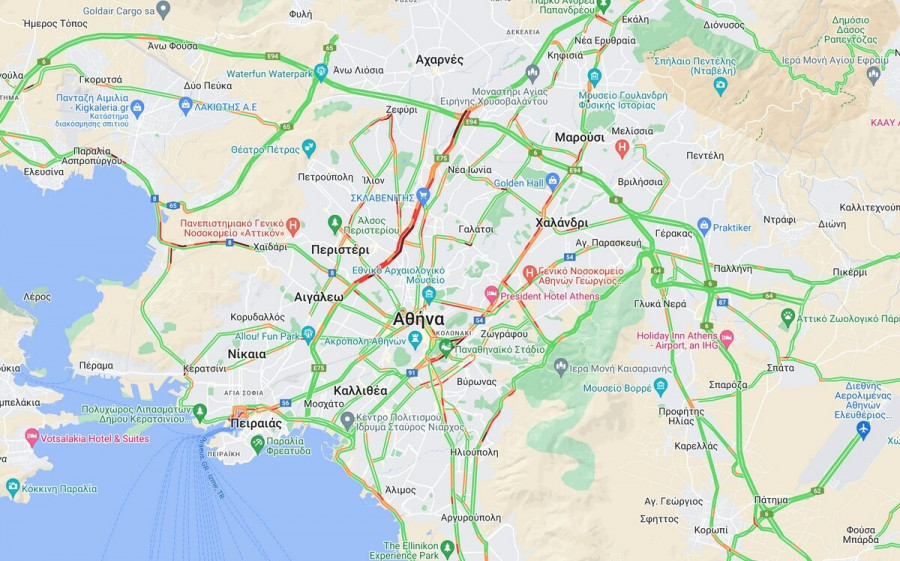 Κίνηση τώρα: Δείτε το χάρτη με την κίνηση στους κεντρικούς δρόμους του λεκανοπεδίου.