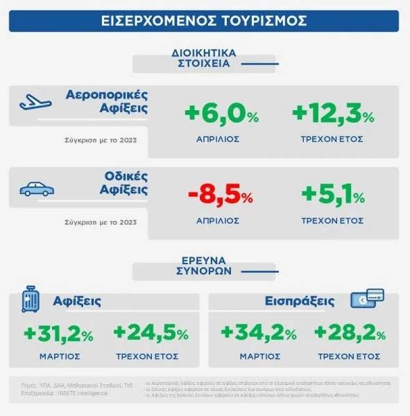 Αισιόδοξα είναι τα πρώτα στοιχεία για την πορεία του τουρισμού το 2024, σύμφωνα με το ΙΝΣΕΤΕ.