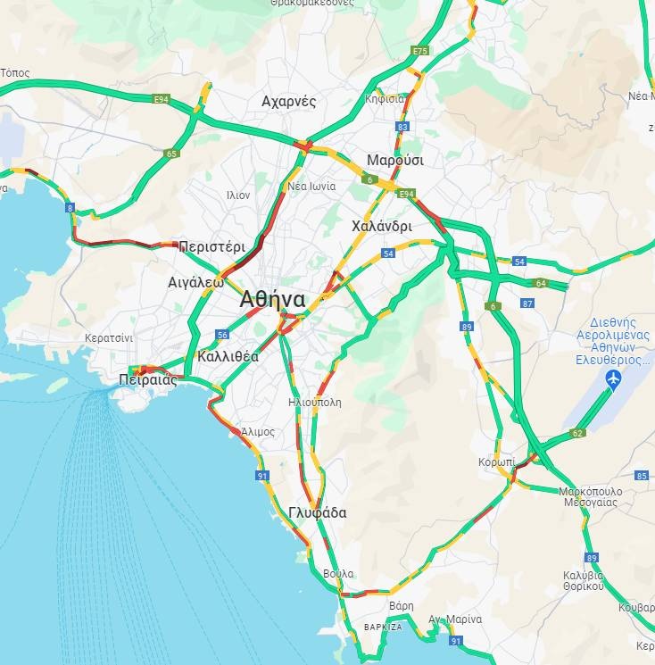 Συγκεκριμένα αυξημένη είναι αυτή την ώρα η κίνηση: