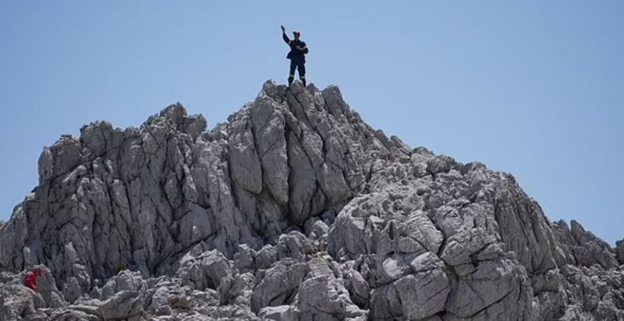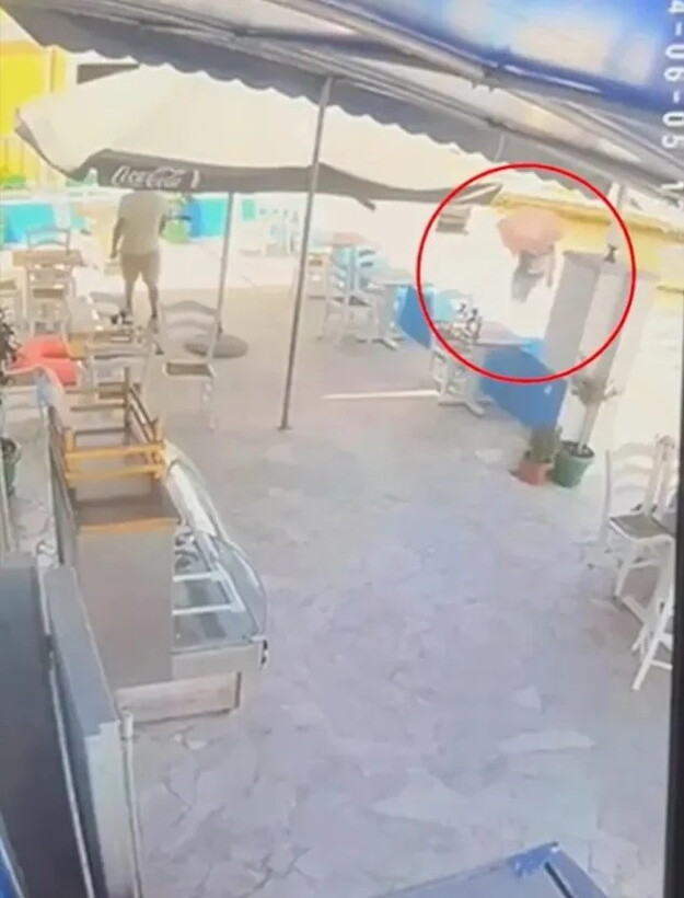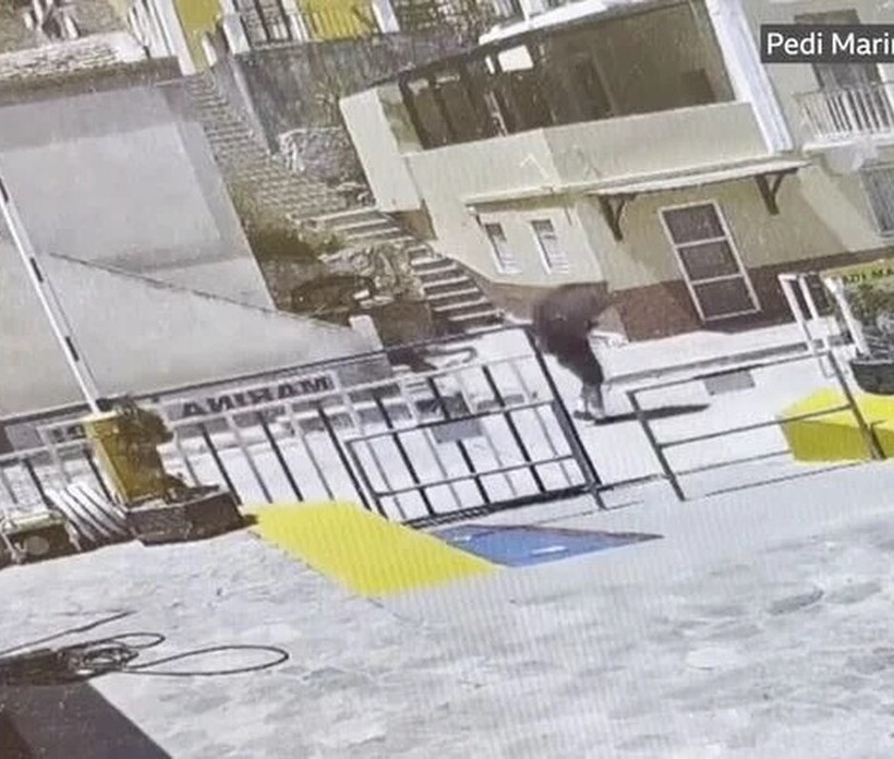 Τα πλάνα δείχνουν έναν άνδρα να περπατά με κατεύθυνση με μια ομπρέλα δίπλα στη μαρίνα του χωριού Πέδι την περασμένη Τετάρτη, με κατεύθυνση προς βραχώδεις λόφους.