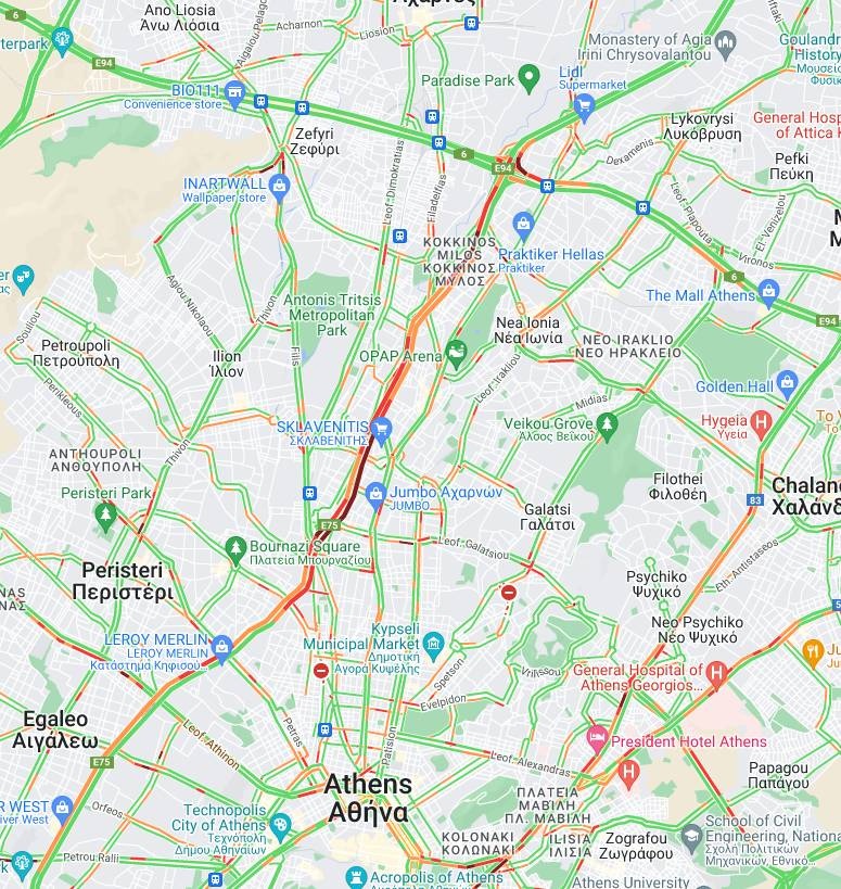 Πιο συγκεκριμένα, έντονη κίνηση επικρατεί στον Κηφισό τόσο στην άνοδο όσο και στην κάθοδο από την Κηφισιά μέχρι και το Αιγάλεω. Παράλληλα, κυκλοφοριακά προβλήματα σημειώνονται και στην Αττική Οδό από την Κηφισιά μέχρι και την Λυκόβρυση αλλά και στο ύψος της Πεύκης.