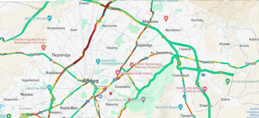 -10΄-15΄από κόμβο Μεταμόρφωσης έως κόμβο Κηφισίας,