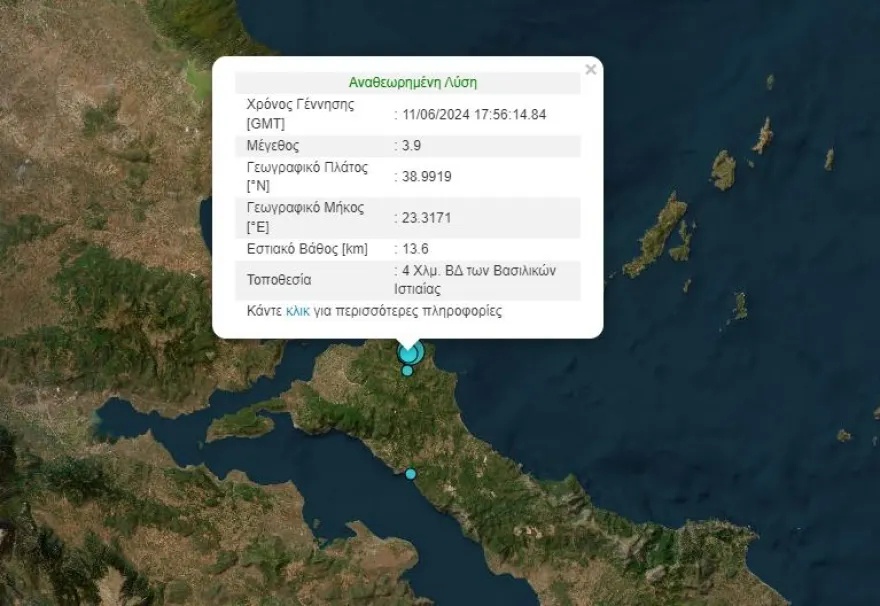 Ειδικότερα, ο σεισμός στη βόρεια Εύβοια ήταν μεγέθους 3,9 Ρίχτερ και σημειώθηκε στις 20:56, ενώ τέσσερα λεπτά αργότερα ακολούθησε δόνηση 4,1 Ρίχτερ. Το επίκεντρο της δόνησης είναι 5 χιλιόμετρα δυτικά-βορειοδυτικά των Βασιλικών σε εστιακό βάθος 13,8 χιλιομέτρων. Ο δεύτερος είχε επίκεντρο 5 χιλιόμετρα δυτικά-βορειοδυτικά των Βασιλικών σε εστιακό βάθος 14,5 χιλιομέτρων. Μάλιστα, οι δύο δονήσεις έγιναν αισθητές και στην Αττική.