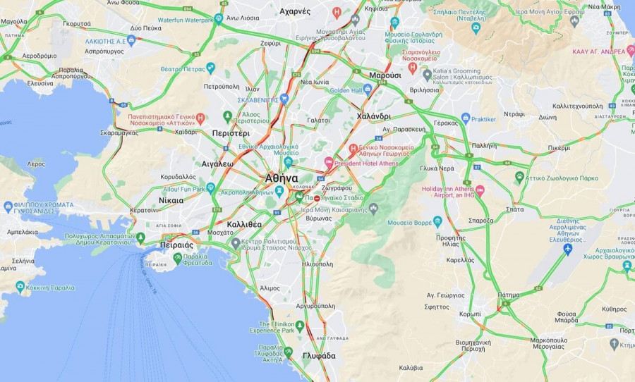Σε Κηφισό, Κηφισίας, Παραλιακή και Αττική Οδό η κίνηση είναι στο «κόκκινο» αυτήν την ώρα. Συγκεκριμένα, η κίνηση στον Κηφισό αρχίζει από το ύψος της Καλυφτάκη έως το ύψος του Αιγάλεω.