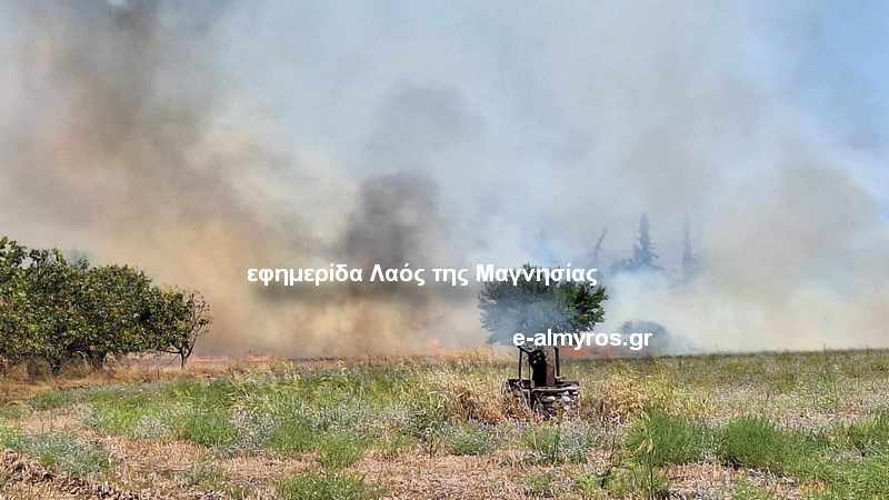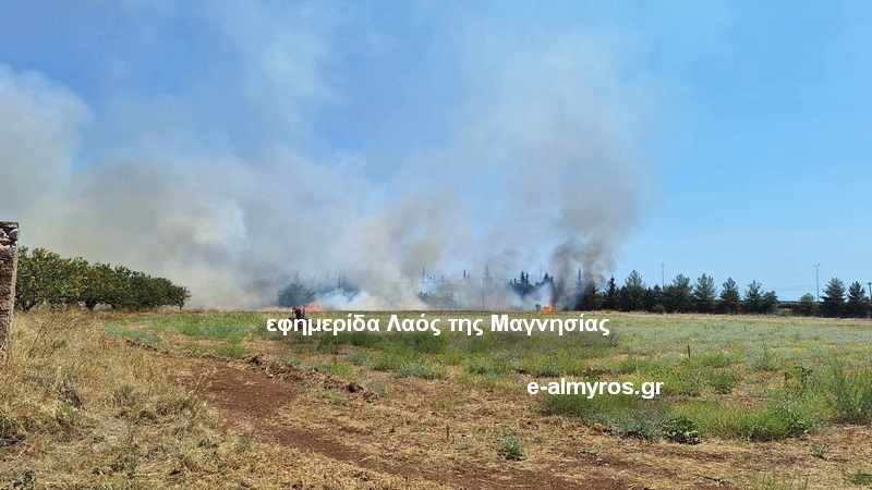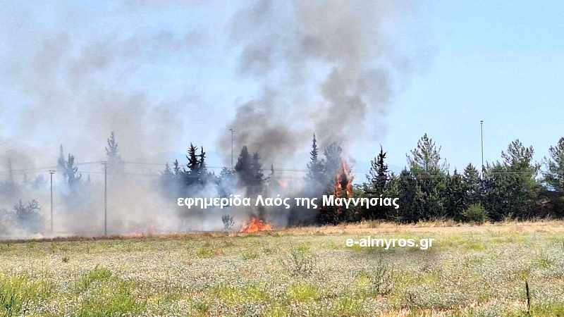 Φωτιά ξέσπασε λίγο μετά τις 12.00 στο Κρόκιο Αλμυρού σε έκταση με ξερά χόρτα, στον παράδρομο της Εθνικής Οδού Θεσσαλονίκης – Αθήνα
