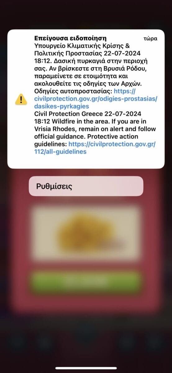 Ακόμη στάλθηκε ενημερωτικό μήνυμα από το 112