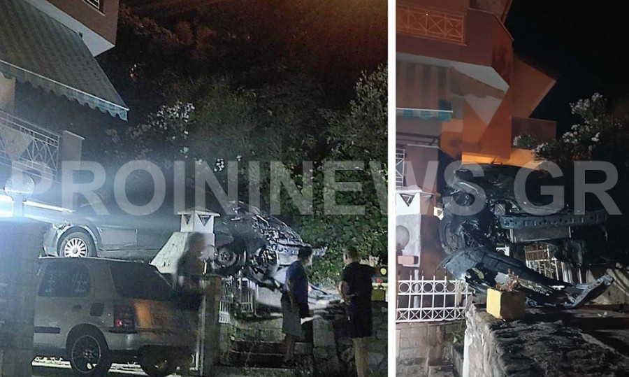 Το αυτοκίνητο έπεσε από ύψος περίπου 20 μέτρων και «προσγειώθηκε» στην αυλή ενός σπιτιού
