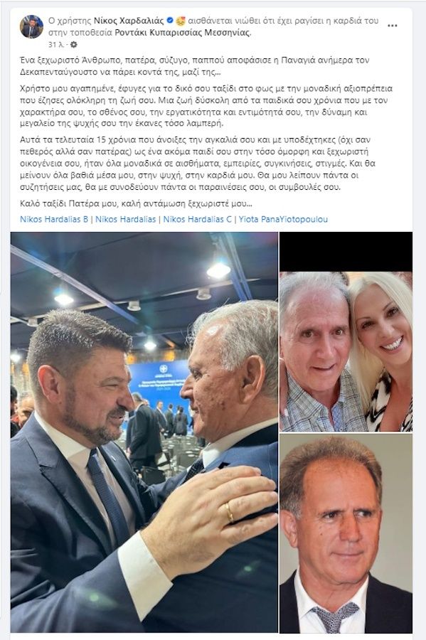 «Καλό ταξίδι Πατέρα μου, καλή αντάμωση ξεχωριστέ μου…», έγραψε μεταξύ άλλων ο Νίκος Χαρδαλίας