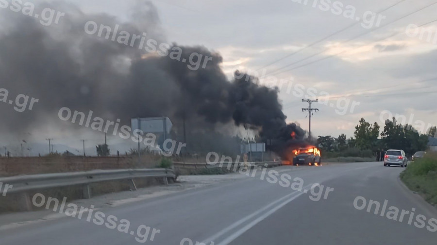 Στις φλόγες τυλίχθηκε αργά το απόγευμα της Παρασκευής ένα αυτοκίνητο έξω από τη Λάρισα, στο δρόμο Συκουρίου – Αγιάς, στο ύψος του πρώην Οινοπνευματοποιείου.