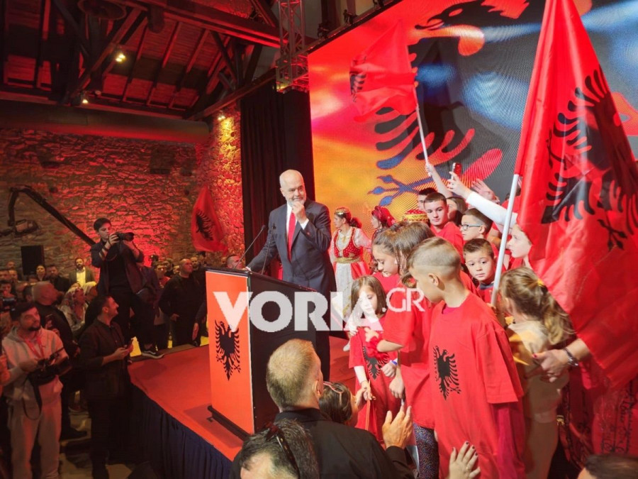 Ο Αλβανός πρωθυπουργός άρχισε την ομιλία του ανακοινώνοντας ότι οι Αλβανοί εκπαιδευτικοί που ζουν στην Ελλάδα και διδάσκουν αλβανικά στα παιδιά θα ενταχθούν σε πρόγραμμα και θα λαμβάνουν αμοιβή από το aλβανικό κράτος.