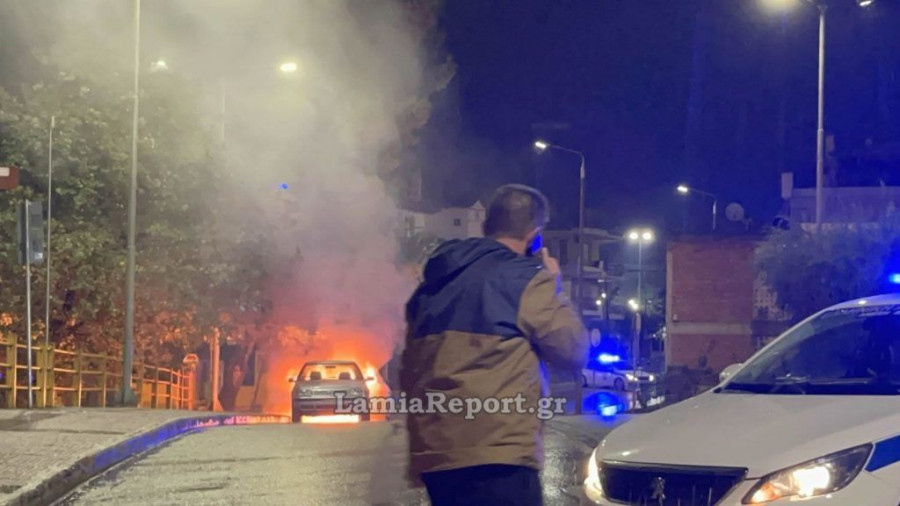 Στις φλόγες παραδόθηκε ένα αυτοκίνητο έξω από το Δημοτικό Κολυμβητήριο Λαμίας το βράδυ της Τρίτης (12/11).