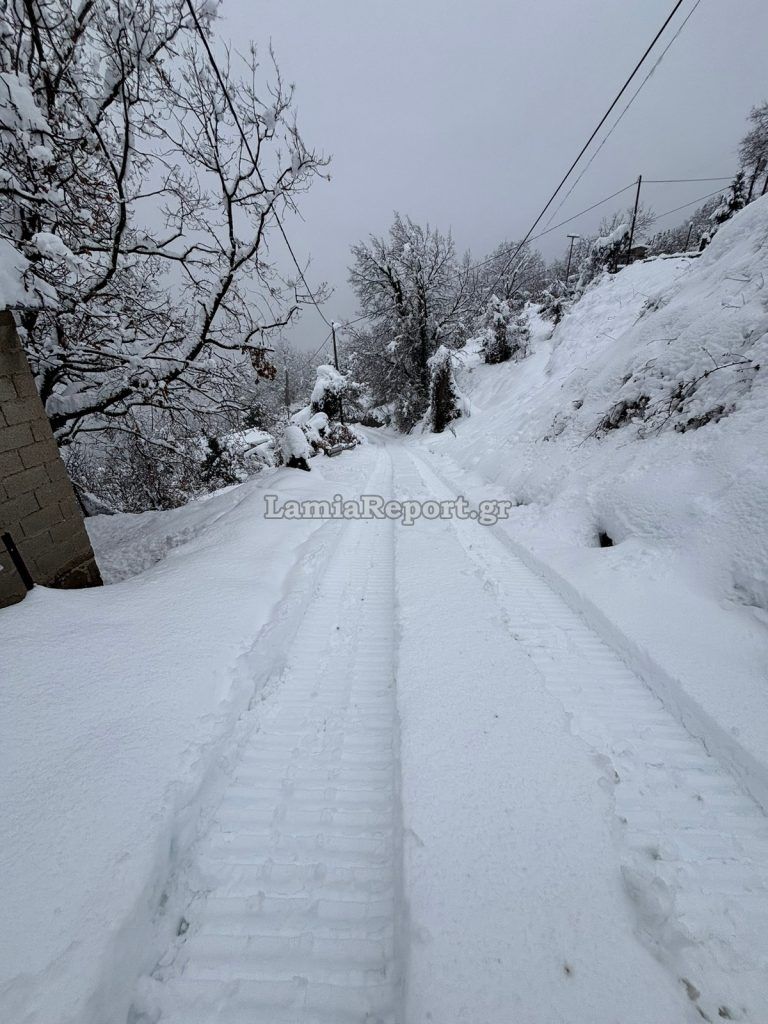 Στην πλευρά του Τυμφρηστού το χιόνι συνεχίζεται - όχι με την ίδια ένταση - προσθέτοντας εκατοστά στη χιονόστρωση, σύμφωνα με πληροφορίες του LamiaReport.gr.