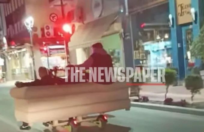 Βόλος: Νεαροί μετέφεραν καναπέ πάνω σε... πατίνια - Απίστευτες εικόνες